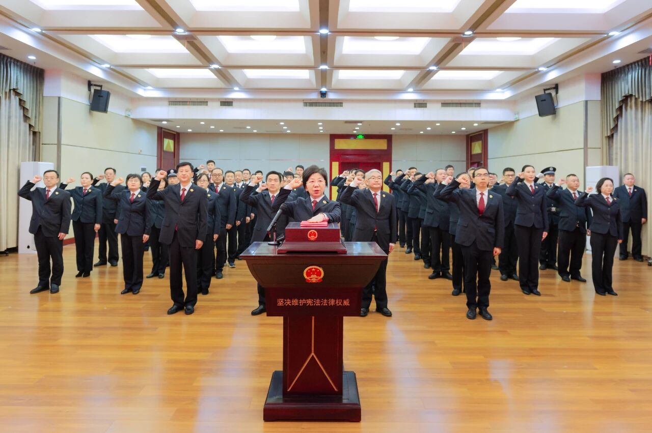 湖北省人民檢察院副檢察長吳婕領(lǐng)誓,88名同志進行了宣誓。